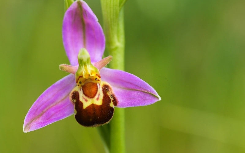 The bee orchid is a stunning example of nature’s attempt at mimicry: the flower’s lower lip looks like a female bee and is intended to attract male bees which will then pollinate the plant. Unfortunately, the correct bee variety does not exist in the UK and the orchid is self-pollinated within these shores.